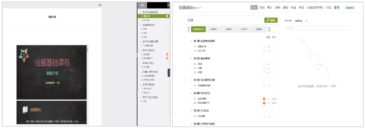 为了保障课程教学效果,史航老师还有针对性地将课堂直播教学视频的主要知识点以及绘画演示过程进行了剪辑,进一步充实线上教学资源;然后通过泛雅课堂向学生发布,学生可在课后对课堂内未能深入掌握的内容进行重复播放学习,保证了学生的学习效率。