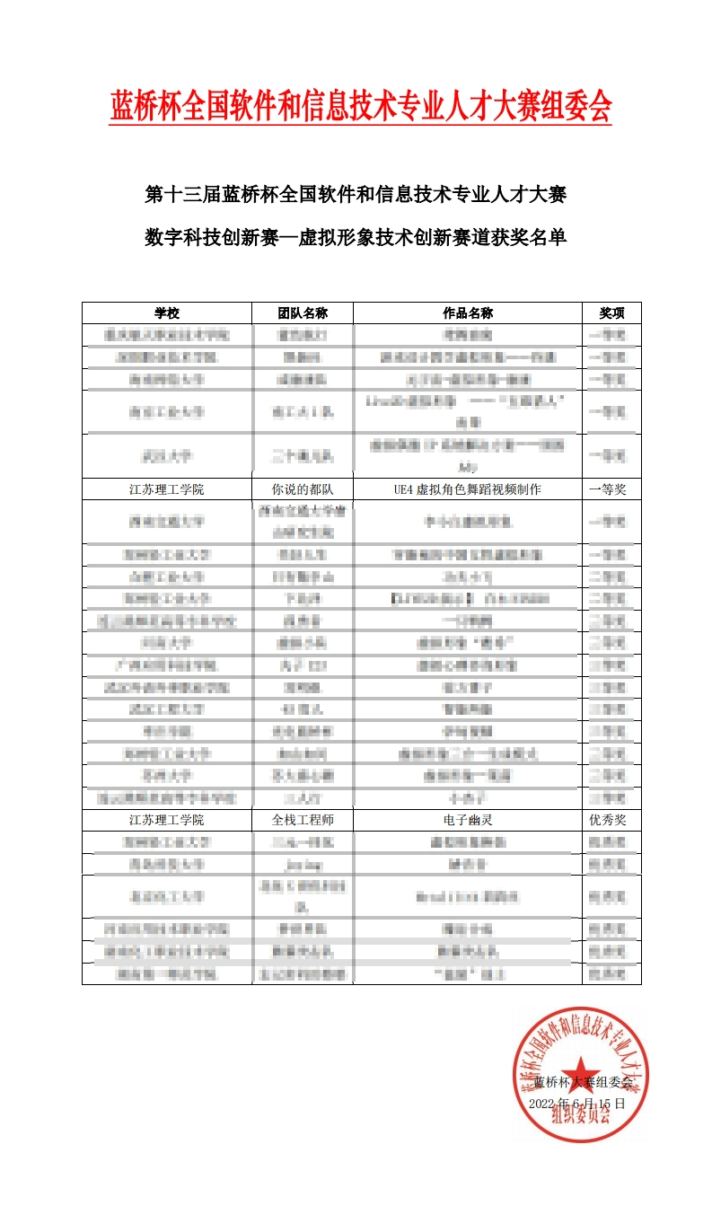 世界杯(中国)在第十三届蓝桥杯全国软件和信息技术专业人才大赛数字科技创新赛—虚拟形象技术创新赛道中获佳绩
