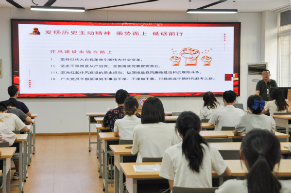 贝绍轶在党课中以“赓续红色精神”为出发点,围绕“三个自觉”,即以高度政治自觉培育忠诚之“心”、以高度思想自觉夯实理论之“基”、以高度行动自觉树立为民之“志”,详细阐述了作为一名共产党员该如何以良好的姿态迎接二十大的召开。他希望广大党员同志能够发扬历史主动精神,乘势而上,砥砺前行,深刻领会“两个确立”的决定性意义,更要以实际行动迎接党的二十大胜利召开。(图:吴冰凝 文:蒋婷婷 审核:王东)