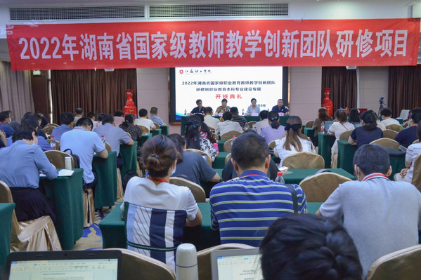2022年8月2日上午,湖南省国家级教师教学创新团队研修职业教育本科专业建设专题项目培训在我校举行,全国重点建设职教师资培训基地办公室副主任陈瑞燕,世界杯平台党委书记谢芳、院长范洪辉,项目负责人、班主任及100多名湖南省国家级教师教学创新团队的负责人和骨干教师参加了开班仪式。开班仪式由学院培训中心主任高伟主持。