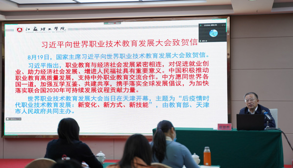 开班仪式后,江苏理工学院党委副书记、校长崔景贵教授做了《为积极而教 与积极同行——做新时代专业卓越的职教名师漫谈》专题讲座。讲座围绕为“积极而教:现代职业教育的时代意蕴”和“与积极同行:追求专业的实践策略”两部分内容,为高职院校骨干培训教师指明了做专业卓越的大学教师,成为新时代“积极职业教育实践者”的基本路径和行动方向。(图:高伟,文:盛小春、高伟,审核:谢芳)