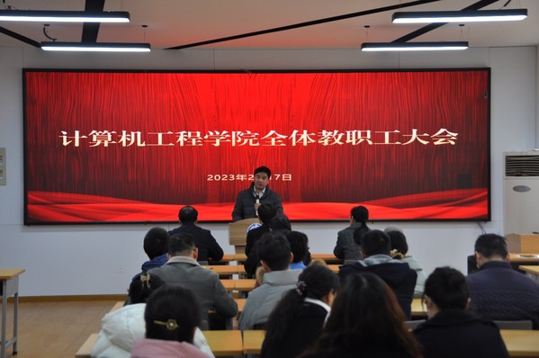2月17日下午,世界杯(中国)在笃行楼109会议室召开全体教职工大会,院党政领导班子及全体教职工参加会议,会议由院党委书记谢芳主持。