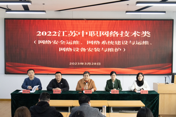 3月28日下午,2022年江苏省中职网络技术类:网络安全运维、网络系统建设与运维、网络设备安装与维护1+X师资培训在我校开班。全国重点建设职教师资培训基地办公室副主任陈瑞燕,世界杯平台党委书记谢芳,世界杯平台培训部主任高伟,项目负责人韩红章、班主任盛小春以及江苏省中职院校的30名骨干教师参加了开班典礼。开班仪式由高伟主持。
