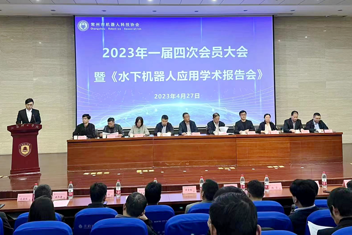4月27日下午,为进一步助推常州市机器人科技协会高质量发展,增强各会员单位加大机器人等人工智能行业品牌化建设工作力度,常州市机器人科技协会一届四次会员大会暨《水下机器人应用学术报告会》在我校召开。校党委常委、副校长贝绍轶,常州市科学技术协会党组书记、主席任洪兴,常州市科学技术协会学会部部长沈戈,我校计算机工程学院党委书记谢芳、院长范洪辉,科技处副处长王碗、王田虎,常州市钟楼区科学技术协会主席陈佳,常州市高新区科技局二级科员张加红,钟楼区永红街道为民村党委副书记张燕飞,江苏省中小学生金钥匙科技竞赛机器人赛项负责人赵晋锋,常州市机器人科技协会理事长黄海军出席会议。120多家高校、中小学及科技类培训机构单位、合作单位、兄弟行业协会领导和嘉宾,我校老年科协领导及大学生代表参加会议。
