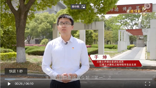 近日,世界杯(中国)与常州市天宁区兰陵街道党工委合作拍摄制作的专题视频:冬训主讲人丨还看今朝“第一流”被学习强国平台选用。学生会主席于坤作为视频主讲人,以习近平总书记在党的二十大报告中强调的科技、人才、创新为主线,分别介绍了常州市盾构机、新能源技术及江苏理工学院人才培养等内容。