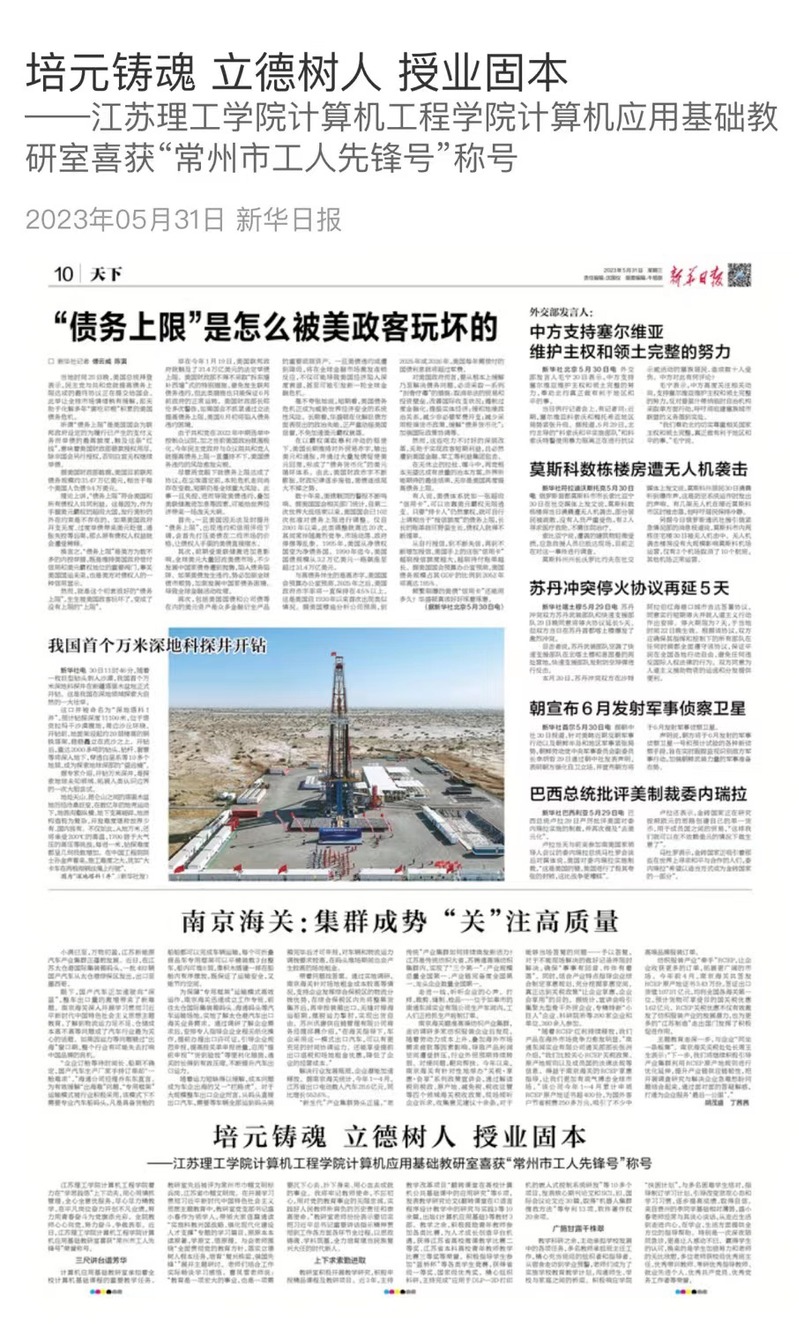 世界杯平台着力在“学思践悟”上下功夫,用心用情抓管理,全心全意优服务,尽心尽力精教学,在平凡岗位奋力开创不凡业绩,努力用青春奋斗为党旗添光彩。全院教师心心向党、努力奋斗、争做表率。近日,世界杯平台计算机应用基础教研室喜获“常州市工人先锋号”荣誉称号。(摘自新华日报)