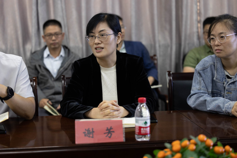 谢芳代表学校做表态发言,她表示在大赛的筹备过程中,一定会在各个方面配合好各位老师的工作,联动起各个部门,将细节落实好、执行好,保证大赛顺利进行。
