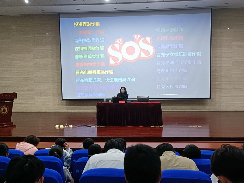 为加大校园反诈防诈教育宣传力度,增强学生“识诈、防诈、反诈”的意识,积极创建“无诈校园”,营造全民反诈的浓郁氛围,10月25日下午,世界杯平台党委特邀常州市律师协会党建研究指导工作委员会委员上官阳城律师为学生开展“反诈识诈,护航青春”预防网络诈骗主题安全教育讲座。
