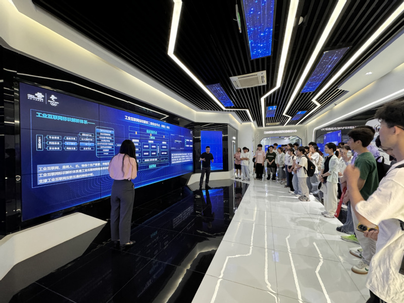 学生观察团成员参观常州联通现代化办公区域和通信行业展厅,在企业讲解员的介绍下,学生聆听5G网络、云计算、大数据等前沿技术的实践应用情况,感受到了通信技术的飞速发展和创新力量。