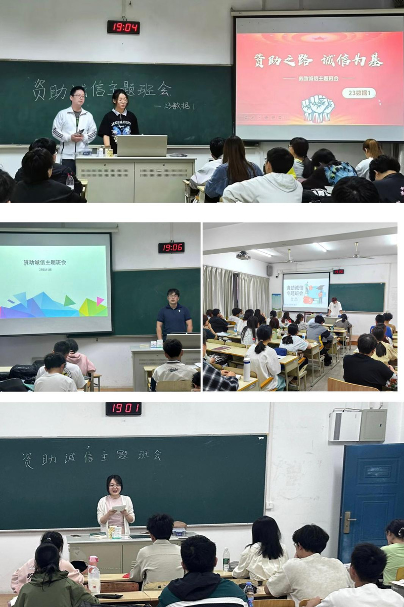 召开诚信教育主题班会,增强学生诚信意识。学院组织班主任老师在5月10日-5月19日之间集中针对大一新生开展了主题班会,本次班会以”资助之路,诚信为基”为主题,在各班班主任的带领下通过资助政策宣讲、诚信故事分享、互动讨论陆续开展,本轮资助诚信班会旨在帮助新生树立对资助政策的正确理解,引导受助学生珍惜资助机会,树立正确的消费观和价值观,构建自立自强、努力奋斗的精神,同时,增强班级凝聚力,营造积极的班级氛围。