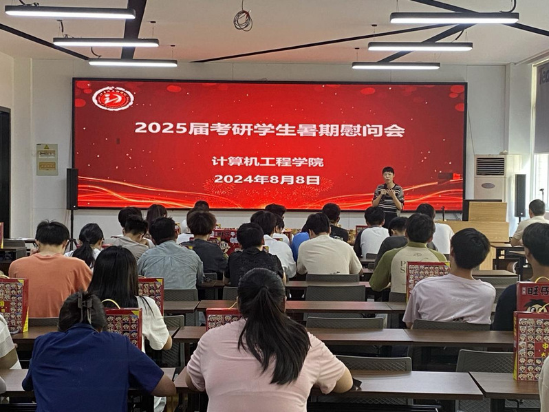 2024年8月8日上午,世界杯(中国)于60号楼109举办2025届考研学生暑期慰问会。学院党委副书记、副院长杨惠、学工办主任钱海峰、辅导员李轲达、年级辅导员郑月民及暑期留校考研复习学生代表参加活动。