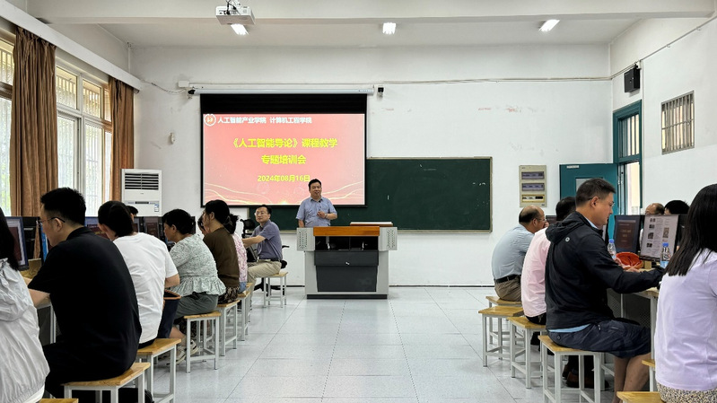 景征骏致欢迎辞。他围绕计算机工程学院在人工智能教育中的探索与实践进行分享,介绍学院在课程开发和教学资源建设等方面的具体成果,并强调此次培训不仅促进教师专业教学能力的提升,同时也促进跨学科交流与合作。