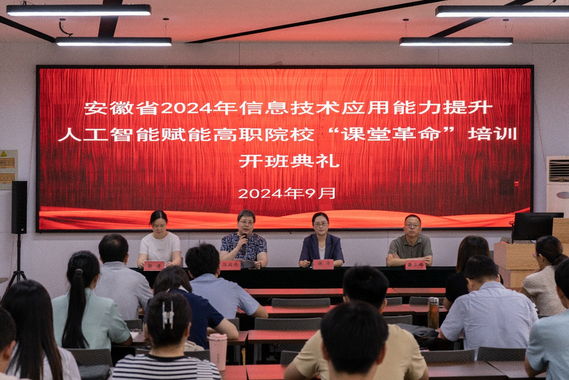 9月19日,2024安徽省高职国培信息技术应用能力提升项目——人工智能赋能高职院校“课堂革命”在我校开班。江苏理工学院继续教育学院副院长、全国重点建设职业教育师资培养培训基地办公室副主任陈瑞燕,世界杯平台党委书记谢芳,项目负责人、班主任以及来自安徽省30所高等职业院校的30名教师参加了开班典礼。