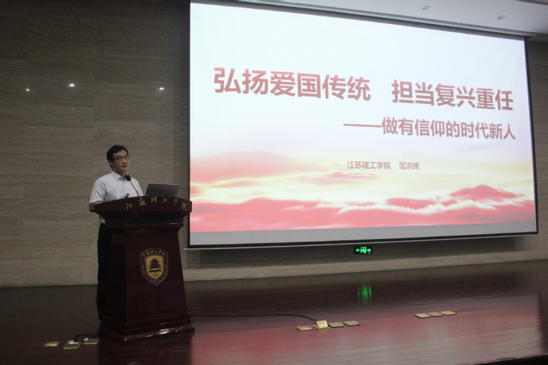 范洪辉作题为《弘扬爱国传统担当复兴重任——做有信仰的时代新人》的专题报告。他引用习近平总书记发表的2024年新年贺词“我们的目标很宏伟、也很朴素,归根到底就是让老百姓过上更好的日子”,启发同学们思考“爱国是什么”以及“怎样去爱国”。范校长勉励全体2024级新生同学要切实肩负起青年的责任和使命,将爱国之心化为报国之行,不断加强学习掌握文化知识,聚焦专业能力成长,练就过硬本领,努力成为堪当民族复兴重任的时代新人。