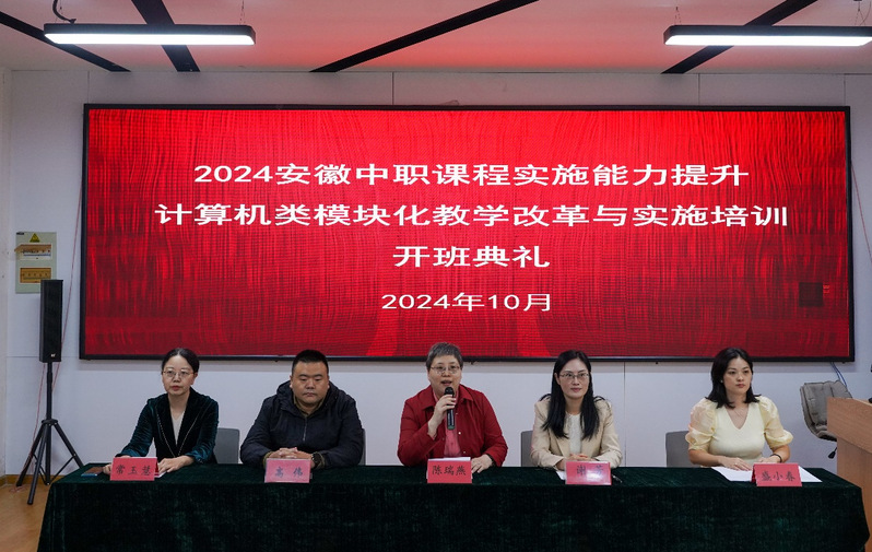10月10日上午,2024安徽中职课程实施能力提升—计算机类模块化教学改革与实施培训在我校举行。继续教育学院副院长、全国重点建设职教师资培训基地办公室副主任陈瑞燕,计算机工程学院党委书记谢芳,计算机工程学院培训与职业教育中心主任高伟,项目负责人常玉慧,班主任盛小春以及安徽的骨干教师参加了开班典礼。开班仪式由高伟主持。