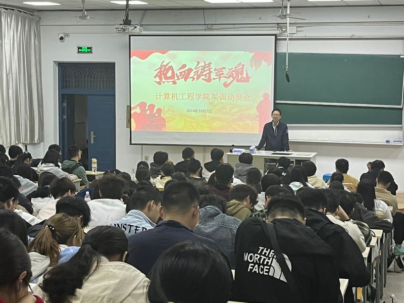 10月7日晚,计算机工程学院召开2024级学生军训动员大会,2024级全体新生参加,动员会由新生辅导员钱海峰和周梦梦主讲。
