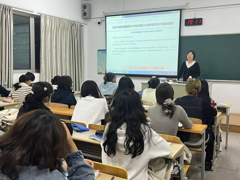 学生们认真学习“习近平给中国国际大学生创新大赛参赛学生代表的回信”,并围绕季海蓉老师的学习分享展开热烈讨论,同时就中国国际大学生创新大赛相关话题进行了交流。学生们认识到了该大赛是为中外大学生创新创业、交流合作提供平台的重要赛事,更是大学生们展示创新成果的平台。学生们一致表示:将牢记习近平总书记的勉励,在实践中不断探索,勇于试错与反思,不断实现自我突破,将创新精神厚植于自身品格,用创意和实践为社会贡献自己的青春力量。