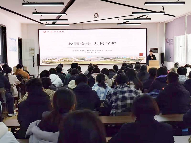 为深入贯彻法治教育精神,切实引导学生树立法治意识、增强自我保护能力、自觉遵守法律法规,2月20日下午,世界杯(中国)开展新学期安全与法治教育第一课,保卫处治安科科长蒋宇超老师应邀为学院全体学生做沉浸式普法讲座。本次活动由学院学工办钱海峰主持。