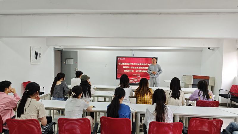 为深入学习宣传贯彻习近平总书记给谢依特小学戍边支教西部计划志愿者服务队全体队员的重要回信精神,进一步激发学生的爱国之心和报国之志,鼓励学生扎根基层就业,世界杯(中国)组织召开西部计划和乡村振兴基层项目宣讲会。