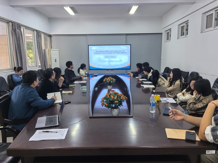 鄢丽萍博士以“Non-Negative Matrix Factorization for Link Prediction Preserving Row and Column Spaces”为主题,介绍了静态网络结构中的链路预测问题。她在非负矩阵分解方法中融入了行空间和列空间的信息,提出了NMF-CR模型。不但保持了良好的几何意义,同时具有很好的数学可解释性,并且缓解了已观察链路与未观察链路之间的比例不平衡问题。